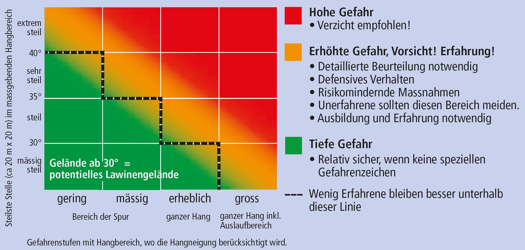 Einfacher Check durch Verknüpfen von Lawinengefahrenstufe, Hangneigung und Hanglage
