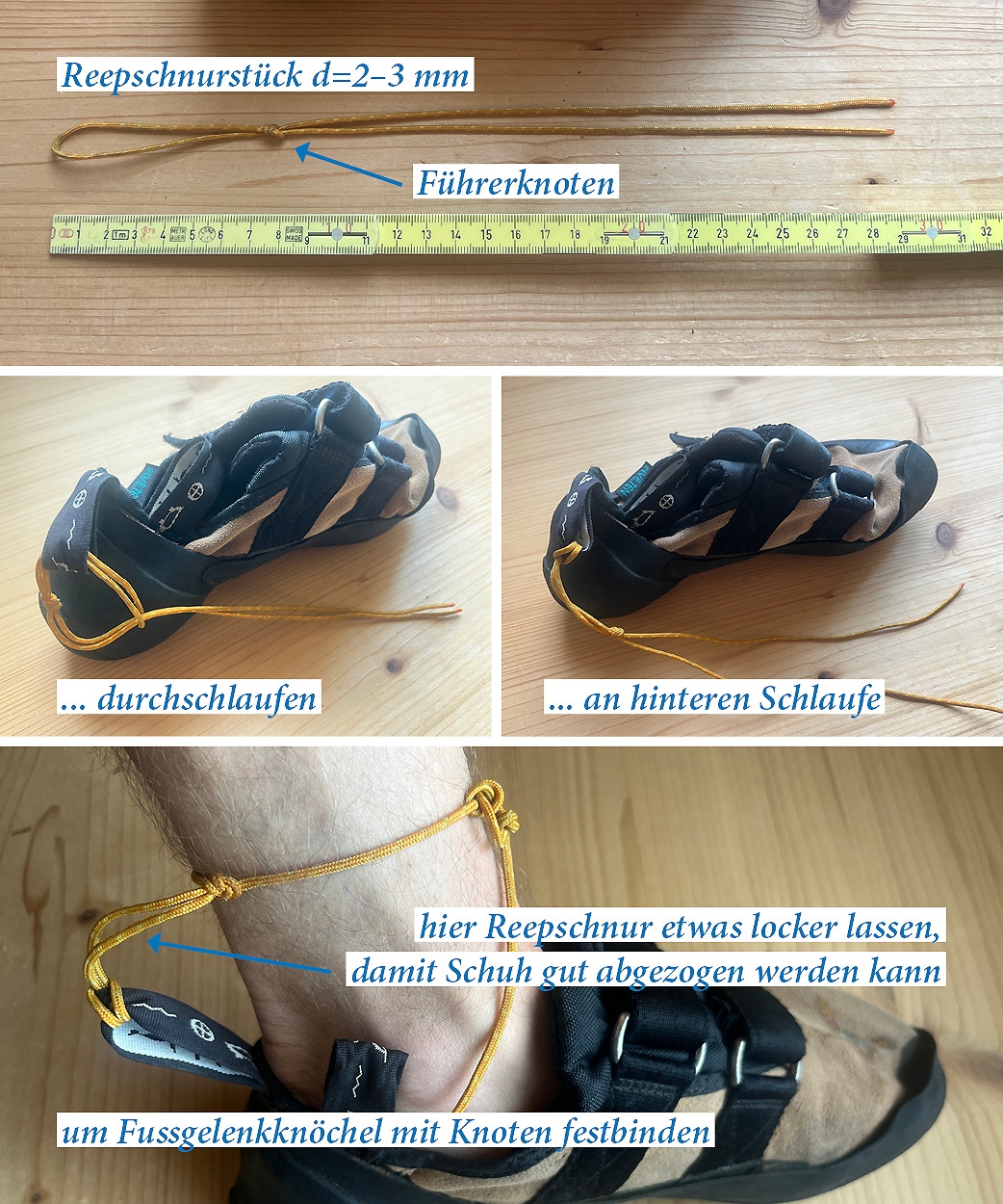 Kletterschuh um Fussgelenk sichern